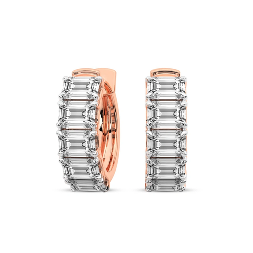 These hoop earrings feature a refined emerald-inspired design, combining geometric sophistication with the subtle brilliance of lab-grown diamonds. Their clean lines and structured shape create a modern, polished look that adds a touch of elegance to any outfit.
